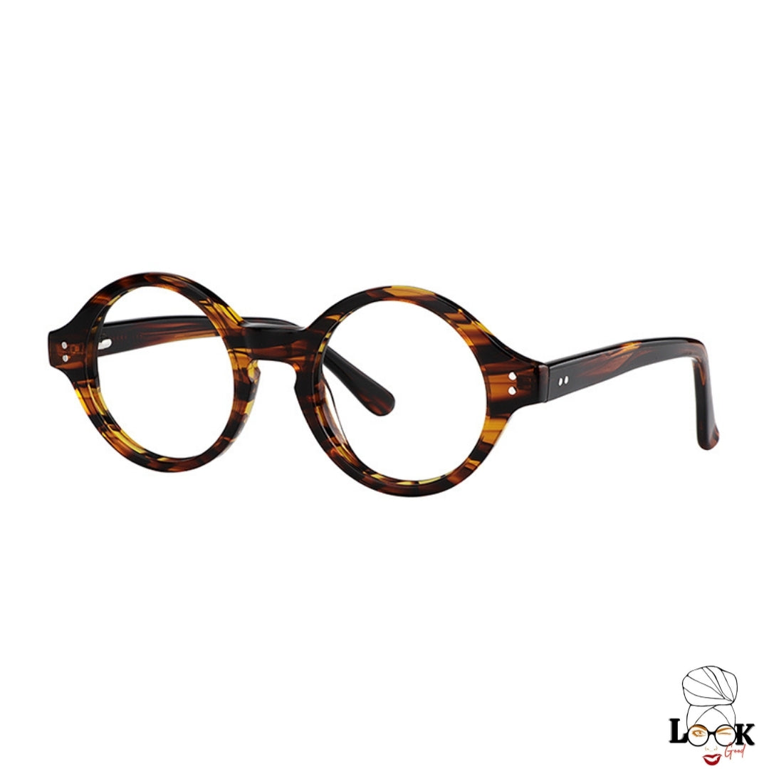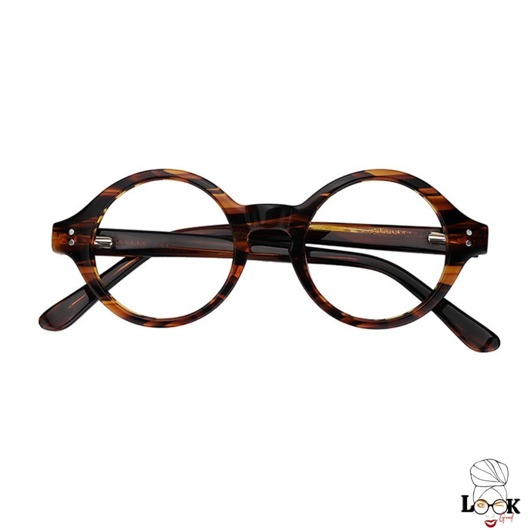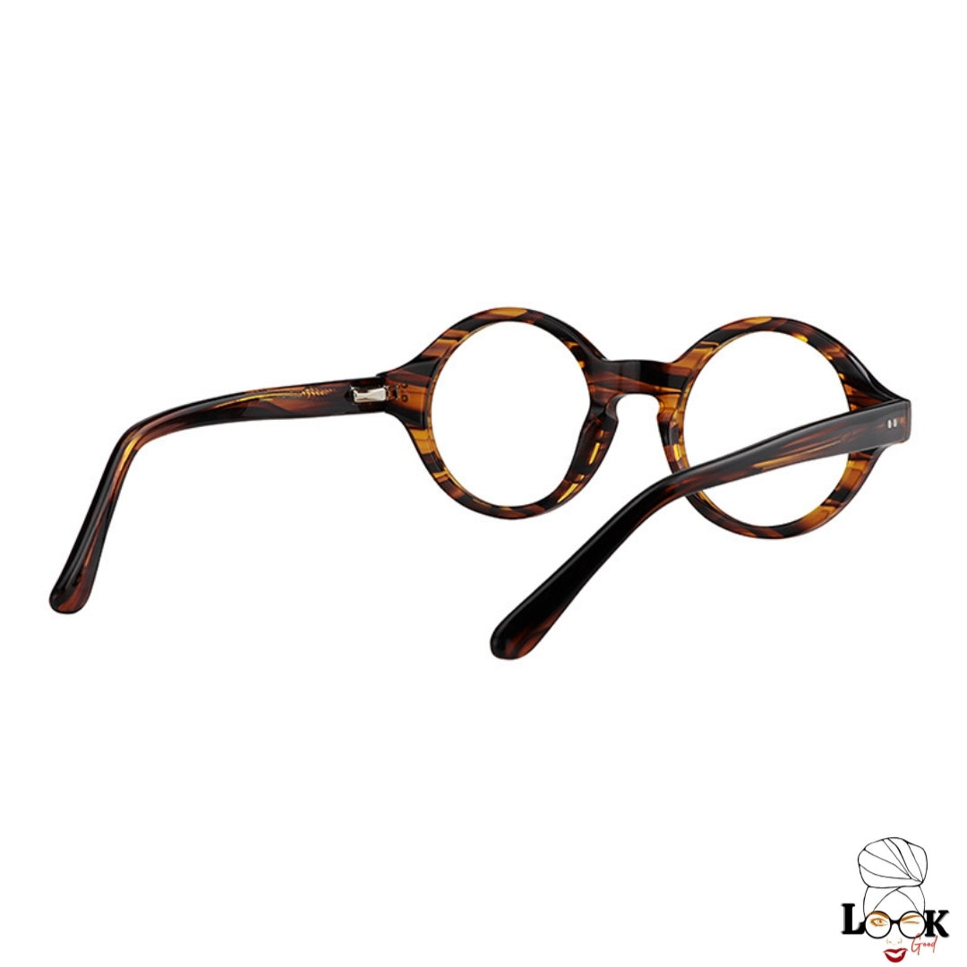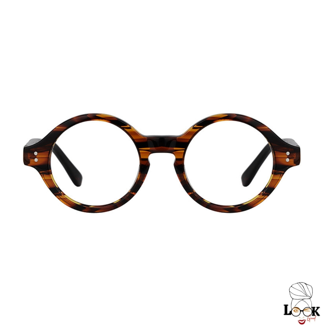 These full-rim round frames for both women and men, featured with a keyhole bridge that can help eliminate pressure from the top of the nose. The glossy, rich brown tortoiseshell frames are made with durable material and are ornamented with fused double-dot accents on both the rims and temple arms. Besides, the carvings on the side of the temple arms make it more delicate. It has a smart look and can flatter your cute.