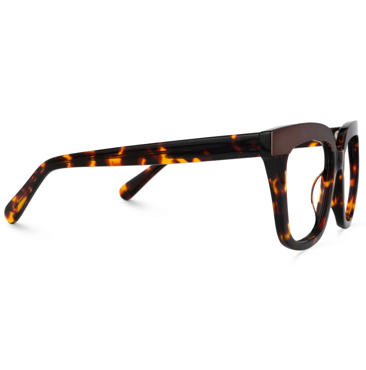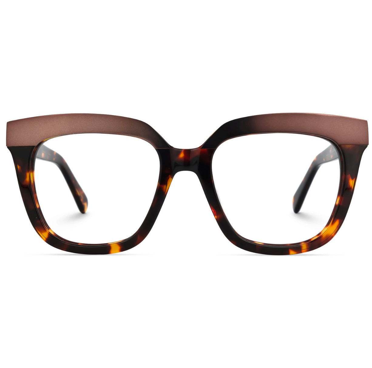 Elevate your look with these sophisticated square tortoiseshell frames, designed to make a striking yet refined statement. The rich blend of brown and tortoise patterns is paired with a unique matte finish across the browline, adding a modern twist to a classic style.
