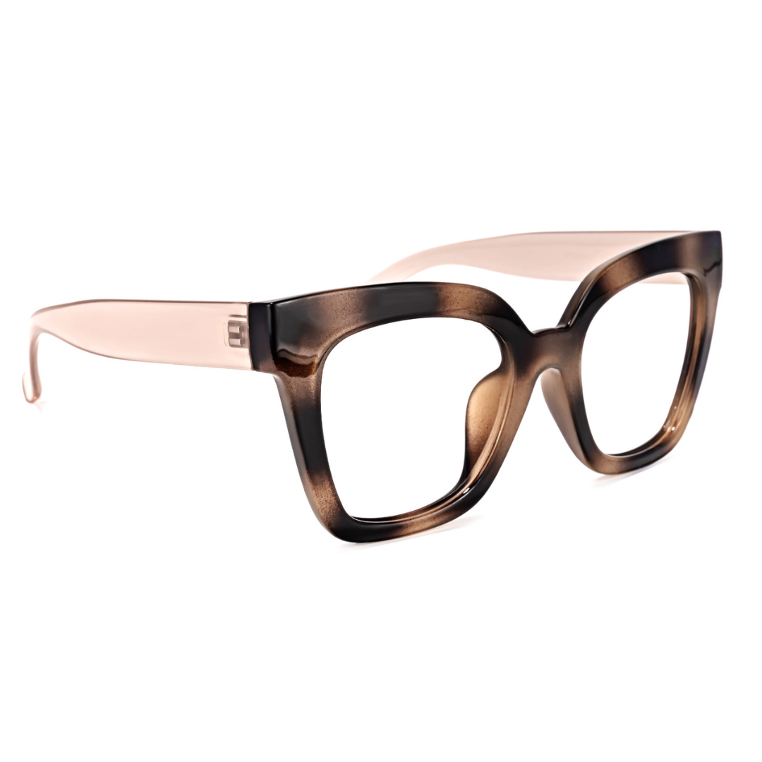Made from high quality materials, with exquisite metal hinges, this chic pair of rectangle glasses features its durable burnt umber rims as well as translucent temples. Besides, designed with bold square shape, this frame is suitable for all kinds of faces, especially for those diamond faces. Due to its high quality materials, it is about 25g.